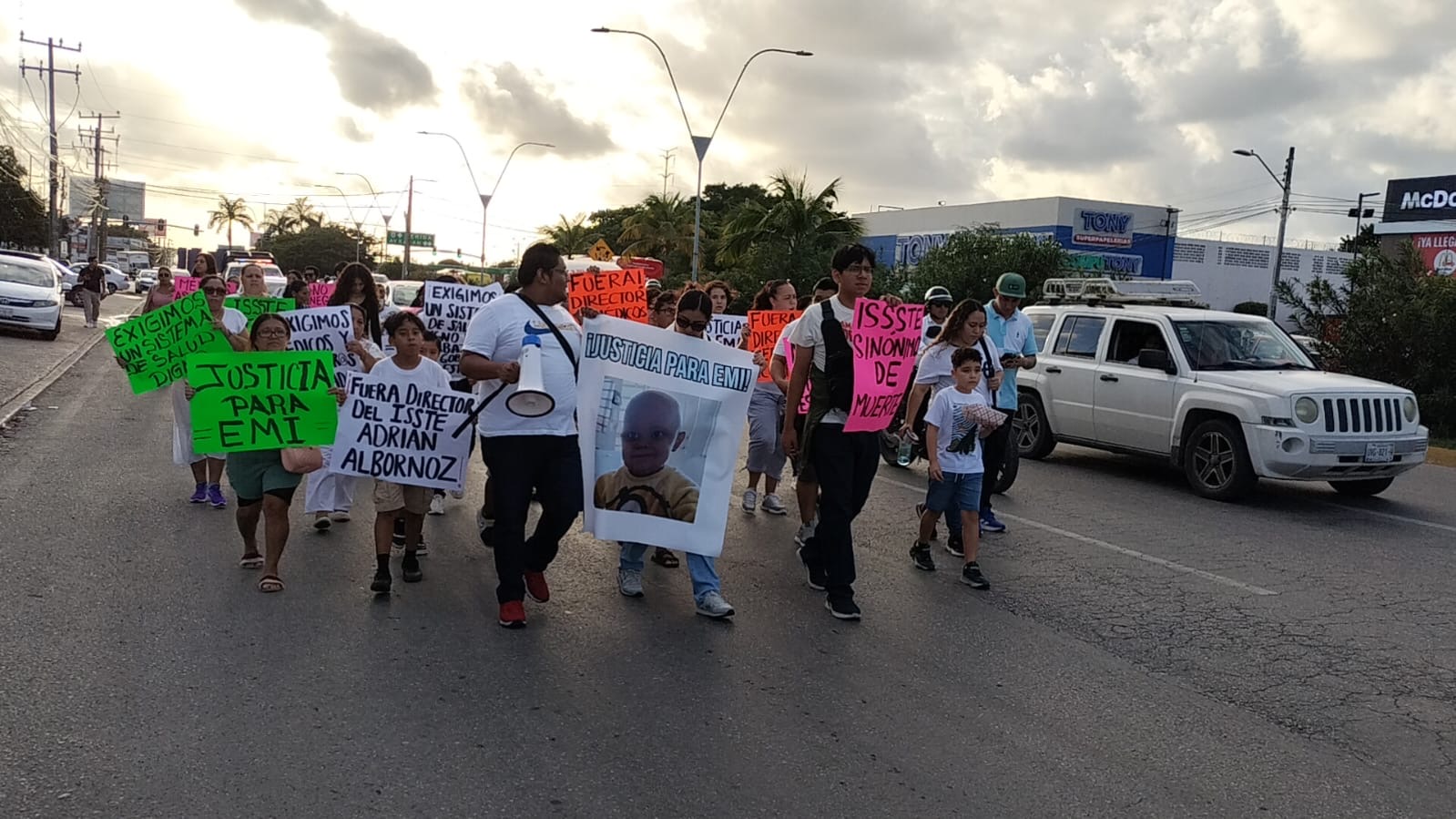 Ante ello, marcharon desde las instalaciones de esta clínica hasta el Palacio Municipal de Benito Juárez, con la intención de exigir justicia por esta negligencia médica, al exponer que el pequeño había sido diagnosticado de cáncer de vejiga