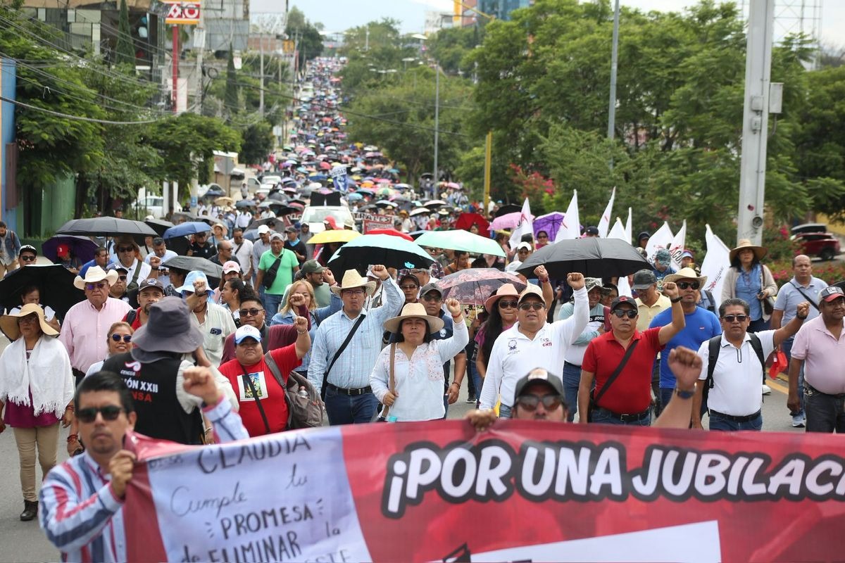 Miles de maestros afiliados a la sección 22 de la Coordinadora Nacional de los Trabajadores de la Educación (CNTE) marcharon ayer en esta ciudad en el contexto del Primer Informe de gobierno de la presidenta Claudia Sheinbaum Pardo.