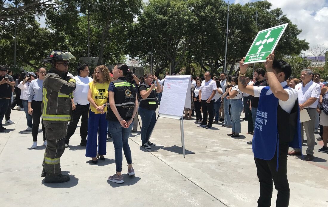 El ayuntamiento de Benito Juárez contó con una nutrida participación en lo que fue el primer Simulacro Nacional 2025 que se realizó este mediodía mediante la hipótesis de un incendio en la que fueron evacuadas 212 personas entre voluntarios, ciudadanos, autoridades municipales y primeros respondientes de las corporaciones de emergencia.