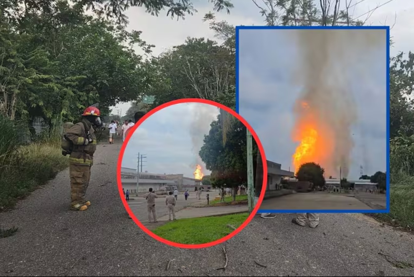 La empresa precisó que el incendio se registró en el punto de inyección del gasoducto de 30 pulgadas, que conecta el complejo con la Estación de Regulación de Medición de Cactus, y que el fuego fue controlado por personal especializado que continúa realizando labores de enfriamiento y contención del proceso residual.