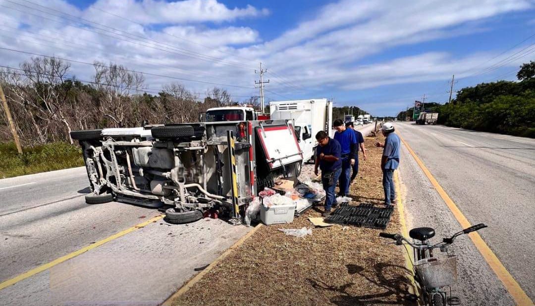 Explosión de Neumático Provoca Volcadura en la Carretera Playa del Carmen-Tulum