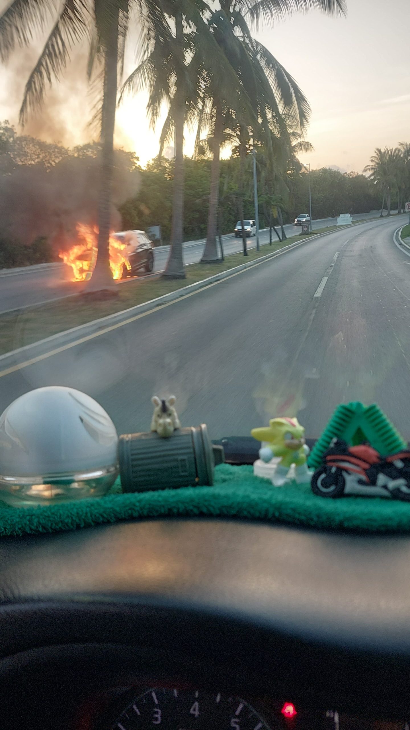 CANCÚN, QRoo, 6 de junio de 2025.- Tripulantes se salvaron; Un incendio vehicular desató el pánico y colapsó el tráfico en el kilómetro 23 del boulevard Kukulkán, muy cerca del Puente Nizuc, en la entrada al aeropuerto internacional en Cancún.