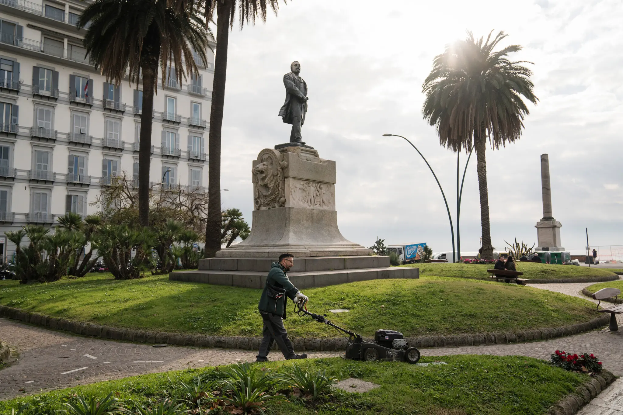 En el paseo marítimo napolitano, notoriamente lleno de hoteles de lujo, Antonio Maimone cuidaba los jardines públicos con palmeras y cactus gigantes a la vista del paseo marítimo de Mergellina, un importante escenario de la vida nocturna.
