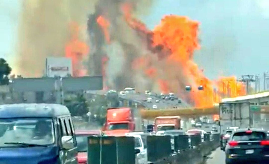 Al momento Cuerpos de emergencia continúan sofocando el incendio causado por la explosión de una pipa de gas.