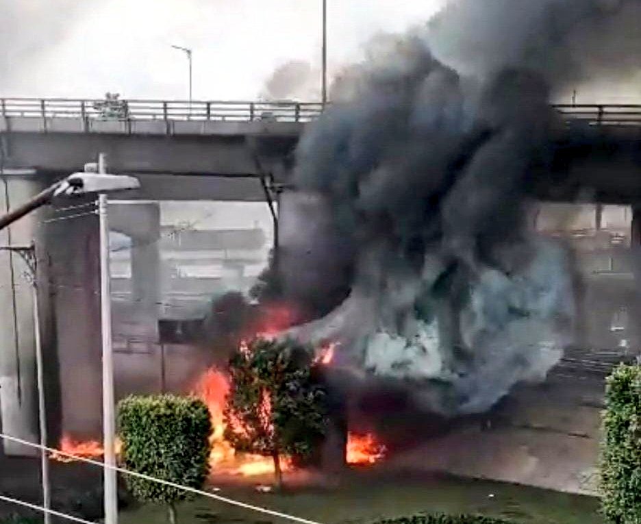 Un aparatoso accidente en el poniente de la Ciudad de México, cerca del Puente de la Concordia y la calzada Ignacio Zaragoza, provocó un fuerte incendio.