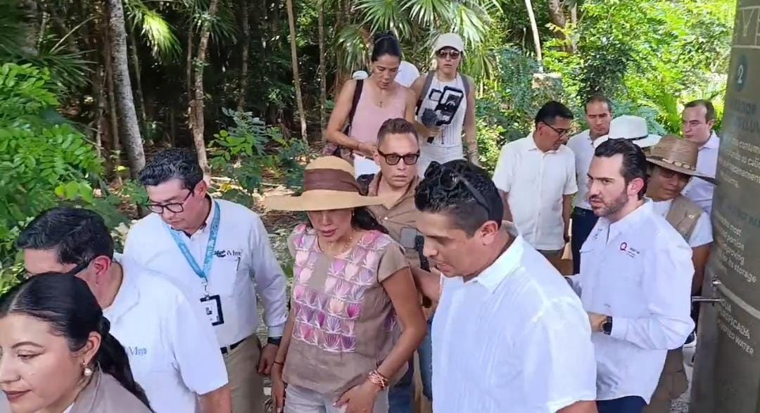 TULUM a 16 de octubre .— La secretaria de Turismo federal, Josefina Rodríguez Zamora, junto con la gobernadora Mara Lezama y el presidente municipal Diego Castañón, encabezó este jueves una visita oficial al Parque del Jaguar, acompañado por funcionarios de los tres niveles de gobierno y representantes del sector empresarial.