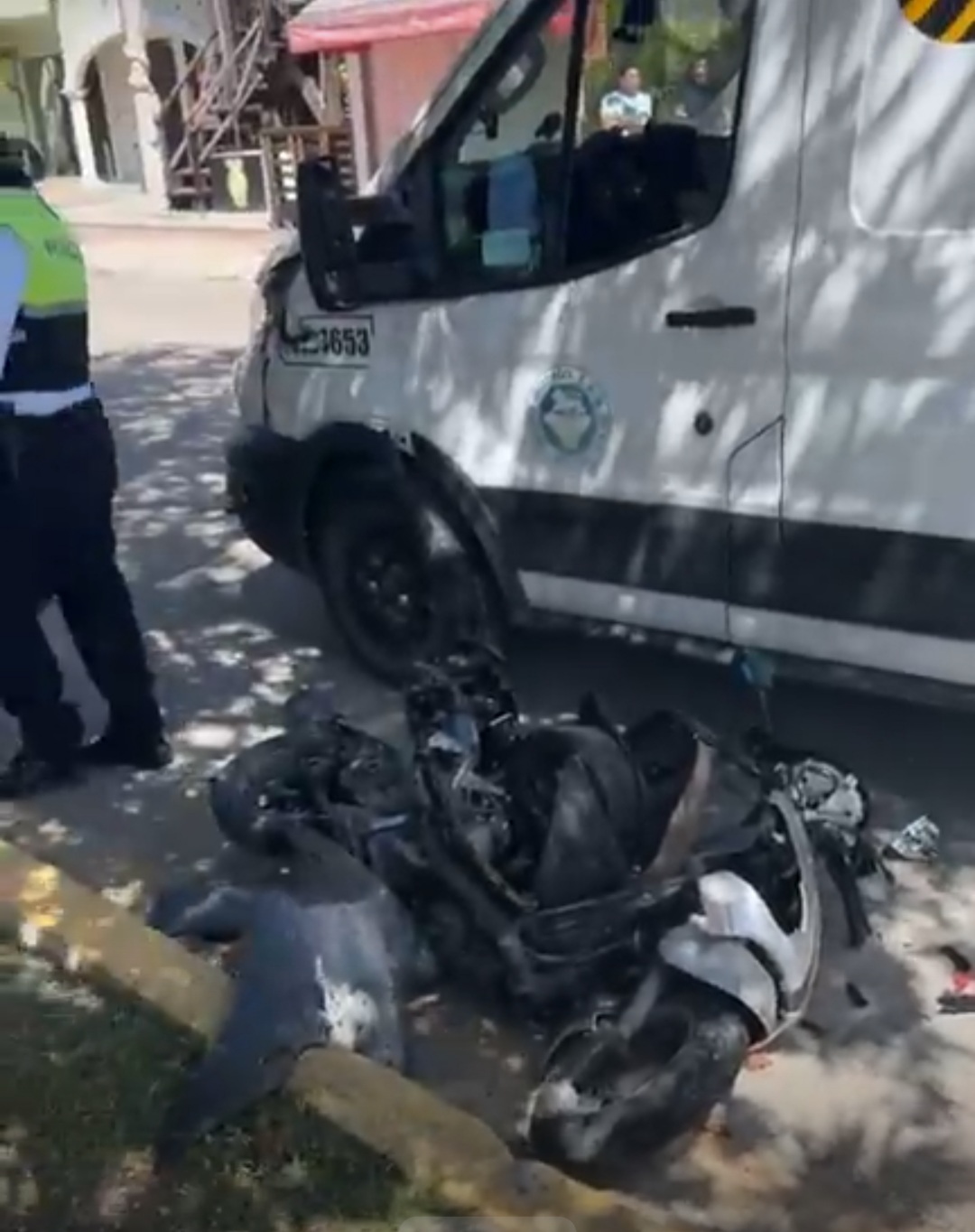 PLAYA DEL CARMEN, a 25 de febrero de 2025.- Termina una motoneta totalmente destruida en aparatoso accidente sobre la avenida 34 Norte en la colonia Gonzalo Guerrero de Playa del Carmen, el conductor termina con lesiones menores.
