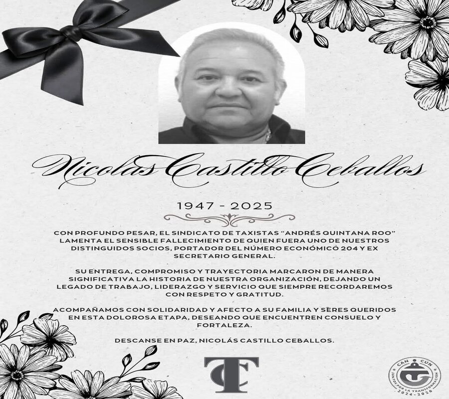 Cancún, Quintana Roo, 06 de Diciembre del 2025.- Nicolás Castillo Ceballos ex dirigente sindical del gremio de taxistas del estado de Quintana Roo y también fungió como delegado / representante de la Secretaría de Infraestructura y Transporte de Quintana Roo (SINTRA) en la zona norte del estad falleció.