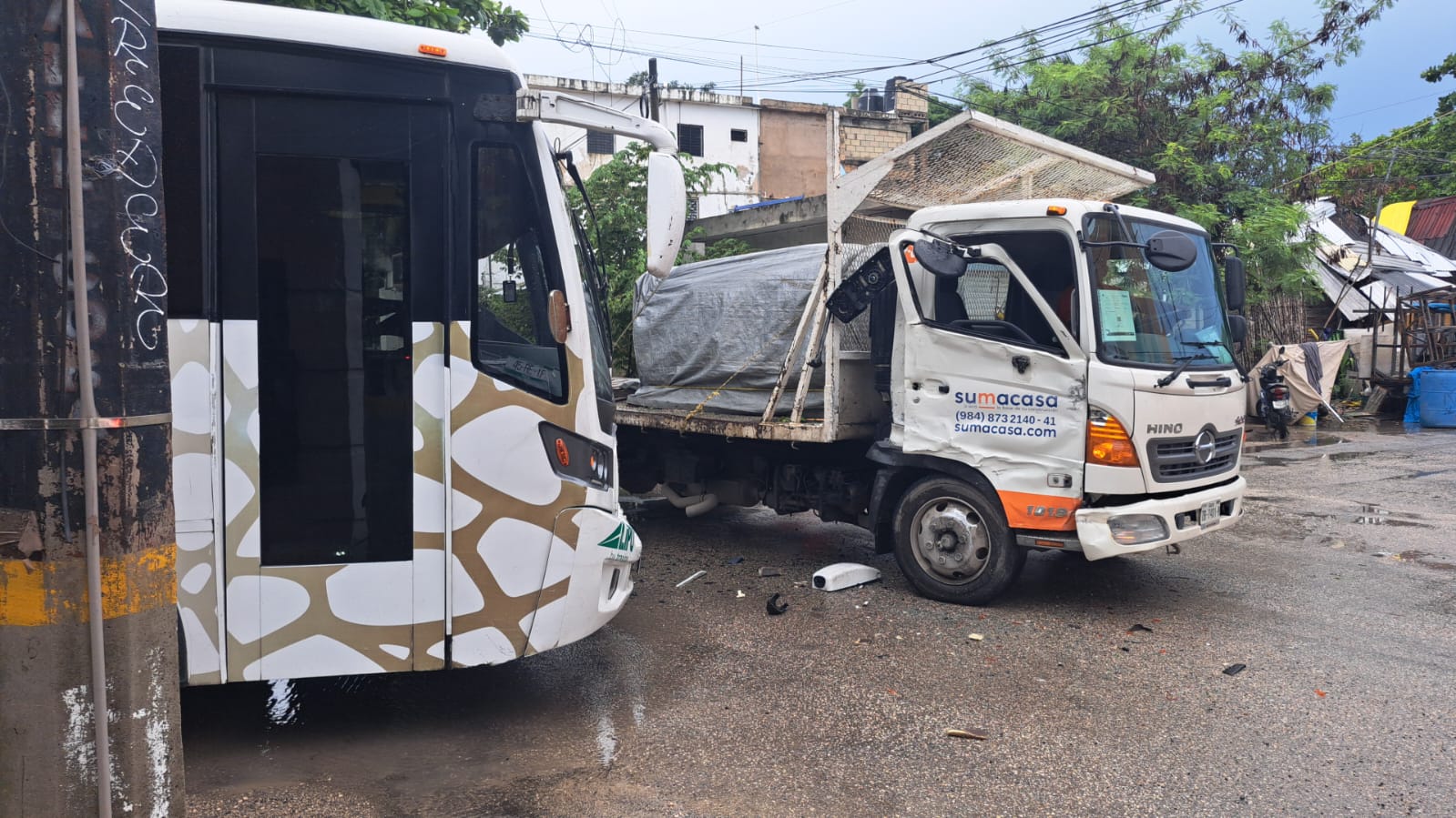 Elementos de Tránsito Municipal y paramédicos de la Cruz Roja acudieron como primeros respondientes. En el lugar atendieron a una trabajadora del hotel Grand Sirenis que viajaba en el autobús y resultó lesionada durante el choque. La mujer fue valorada por los socorristas y trasladada a un centro médico para una atención más especializada; su estado de salud se reporta como estable.