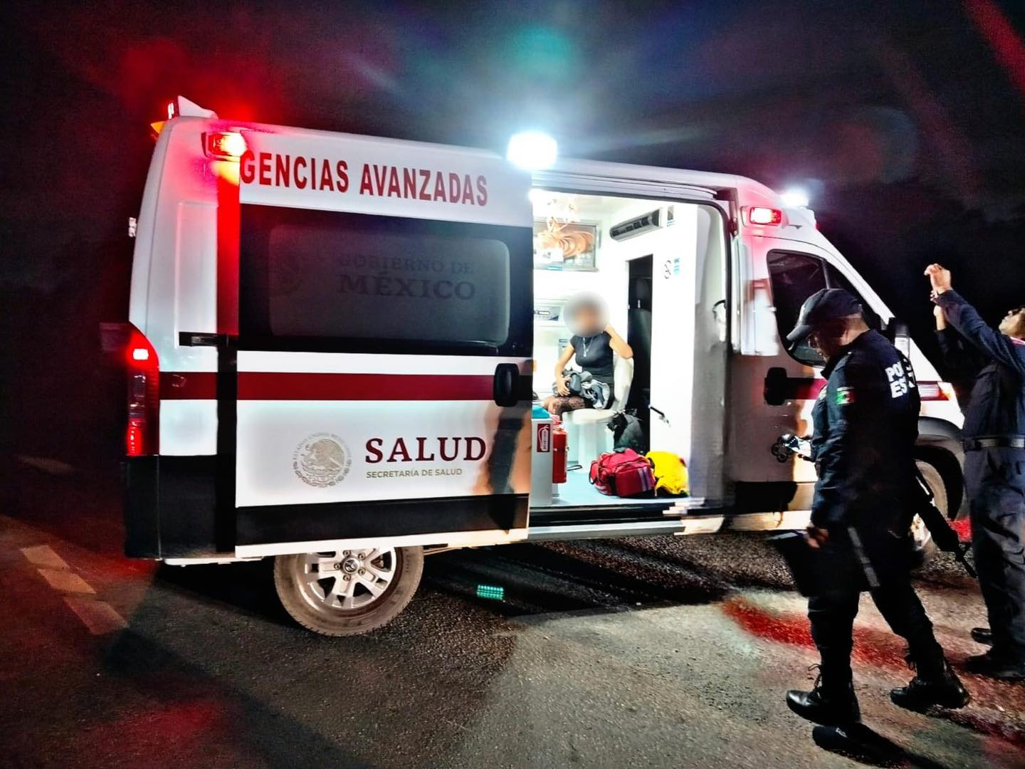 Al arribar al punto del accidente, los rescatistas localizaron a una mujer adulta y a dos menores de edad tendidos sobre el pavimento y en la orilla de la carretera. Tras una primera valoración, se determinó que los tres presentaban diversos golpes contusos y raspaduras de consideración en distintas partes del cuerpo, producto del impacto y la caída.