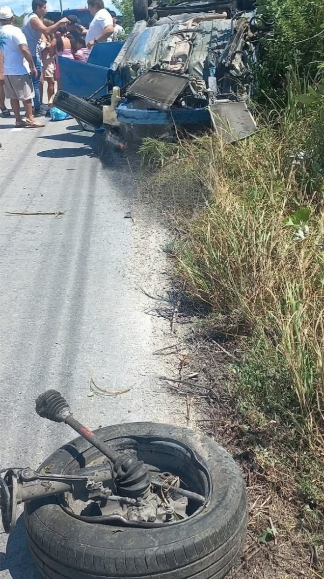 Tulum, 14 de septiembre.- Un accidente ocurrido en la carretera federal 307, a la altura de Chemuyil, dejó a cuatro integrantes de una familia lesionados y su vehículo en pérdida total.