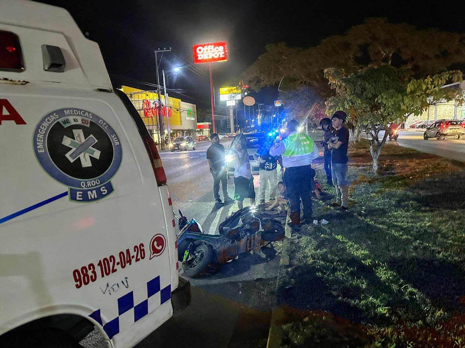 Chetumal, 22 de octubre.- Una familia conformada por tres personas, entre ellas una menor de edad, resultó lesionada tras derrapar en su motocicleta la noche del martes sobre la avenida Insurgentes, justo frente a la plaza Las Américas, en Chetumal. El percance ocurrió cuando el conductor intentó esquivar un vehículo que presuntamente le cerró el paso.