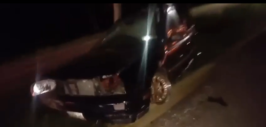 Cerca del sitio, sobre el camellón central, se encontraba un automóvil negro con aparentes signos de haber volcado.