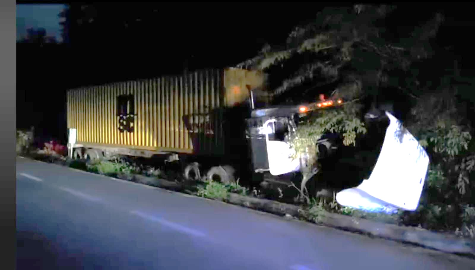 El vehículo avanzó fuera de la cinta asfáltica hasta impactar contra vegetación y árboles antes de detener su trayectoria, el operador único ocupante del tráiler, perdió la vida en el lugar del siniestro.