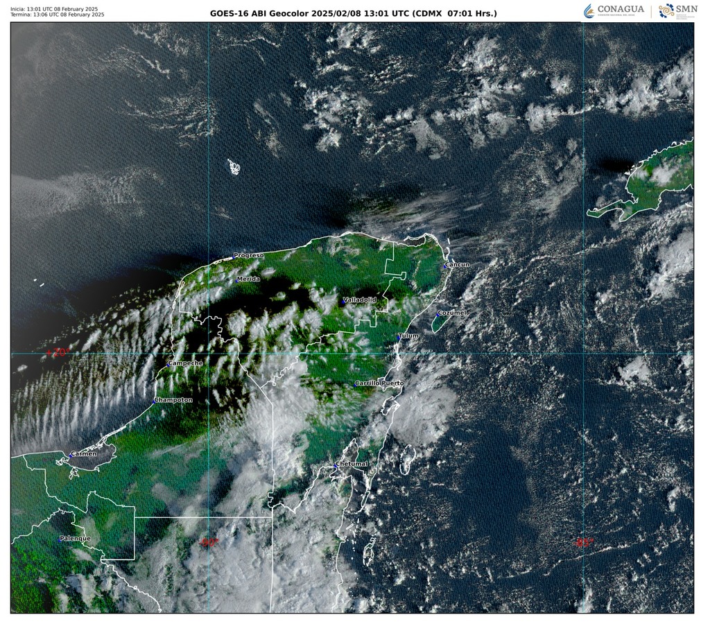 Con base en la sinopsis meteorológica, el ingreso de aire húmedo del mar Caribe generará cielo medio nublado a nublado en el transcurso del día, con intervalos de chubascos de 5 a 25 mm sobre algunas zonas del estado.