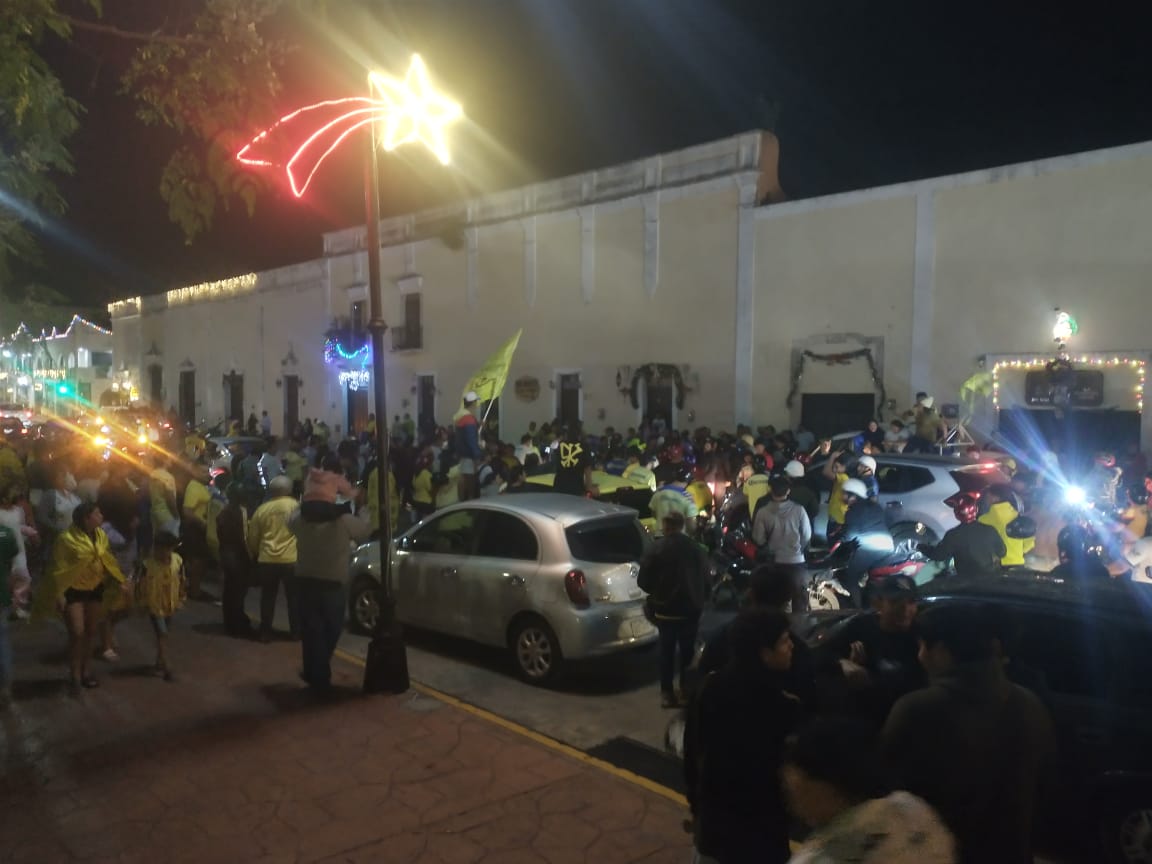 VALLADOLID, YUCATAN, 16 DE DICIEMBRE.- La celebración por el triunfo del América en la final del Torneo Apertura 2024 se salió de control en el centro de Valladolid, generando molestias entre gran parte de la ciudadanía. Aunque no hubo un desenlace trágico, el ambiente de euforia derivó en consumo de alcohol en la vía pública, escándalo a altas horas de la noche, peleas y la agitación de vehículos en pleno corazón de la ciudad.