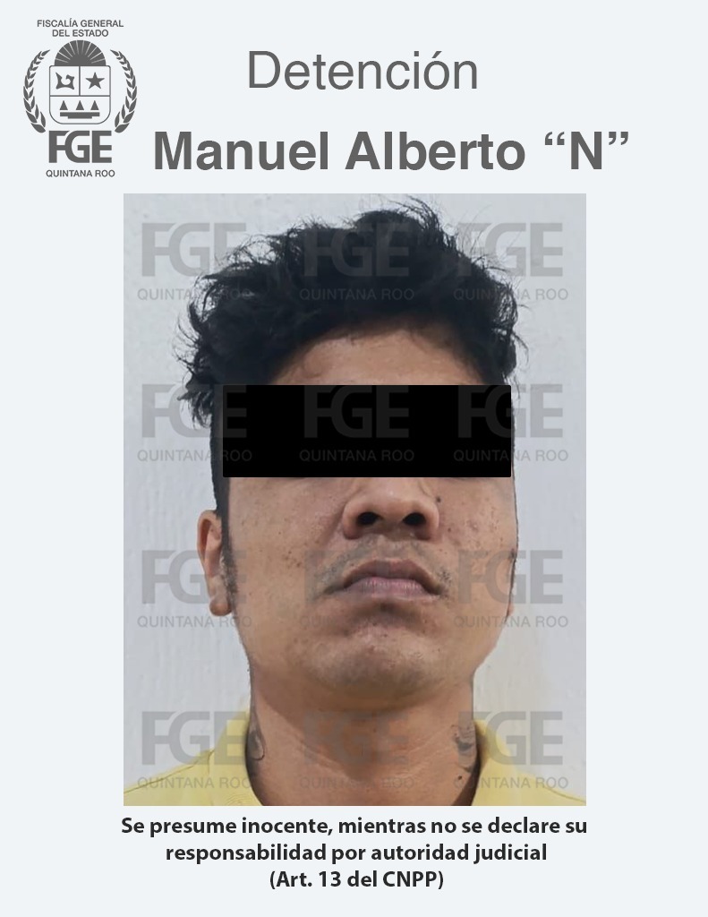 La Representación Social, con base en la denuncia de los hechos, inició una carpeta de investigación, solicitó y obtuvo del órgano jurisdiccional la orden de aprehensión contra Manuel Alberto “N”, la cual fue cumplimentada por parte del personal de la Fiscalía General del Estado.