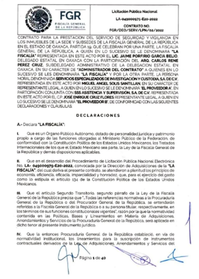 Este es uno de los 30 contratos que la FGR otorgó una empresa que ahora investiga de traficar armas.