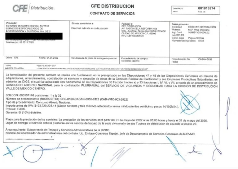 Esto sin contar los otorgados por el Instituto Nacional de Migración para la vigilancia de estaciones migratorias que, aunque han sido documentados por medios, no se encuentran en su totalidad en las plataformas de contrataciones.