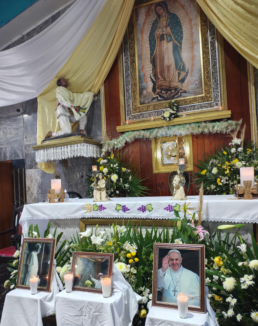 CHETUMAL, 22 de abril. – En un ambiente de reconocimiento y devoción, a las 19:00 horas se llevó a cabo el rezo del rosario y la celebración de la santa misa en memoria del Santo Padre, el Papa Francisco, en el Santuario Guadalupano de Chetumal. Frente al altar mayor, se colocaron tres fotografías del pontífice, mientras los asistentes elevaban oraciones por su eterno descanso.