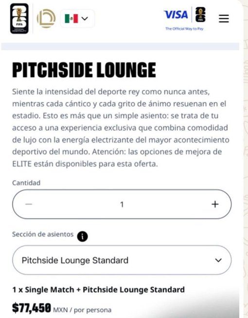 La fiebre por el Mundial 2026 ya comienza a sentirse en México y un ejemplo claro es el precio de los primeros boletos exclusivos que se pusieron a la venta. La FIFA ya ofrece entradas individuales para el primer partido que se disputará en Guadalajara, en el Estadio Akron, con un costo de 77 mil pesos mexicanos. Estos lugares corresponden al Pitchside Lounge, una de las zonas más exclusivas y cercanas a la cancha del inmueble.