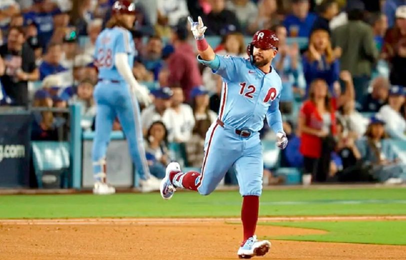 J.T. Realmuto comenzó una emboscada de 5 carreras en la octava entrada sobre Clayton Kershaw, el próximo miembro del Salón de la Fama para los Dodgers, abriendo con un cuadrangular solitario; Trea Turner, el campeón de bateo en la Liga Nacional, agregó dos más con un hit remolcador y Kyle Schwarber selló el rally con su segundo jonrón del partido, un batazo que apenas alcanzó a rebasar la barda del jardín derecho.