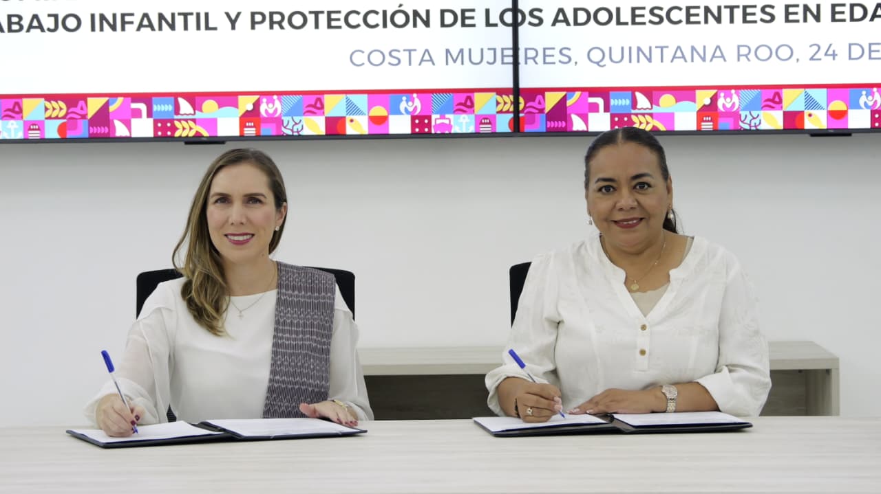 Isla Mujeres.- En el marco del Nuevo Acuerdo por el Bienestar y Desarrollo de Quintana Roo que impulsa la gobernadora Mara Lezama Espinosa, la Secretaría del Trabajo y Previsión Social del Estado (STyPS), encabezada por Verónica Salinas Mozo, firmó dos convenios de colaboración con la presidenta municipal de Isla Mujeres, Atenea Gómez Ricalde, que fortalecen la atención laboral y la defensa de los derechos de niñas, niños y adolescentes.