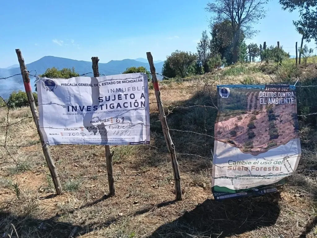 Durante el cumplimiento del mandato judicial, personal de la Unidad de Investigación y Persecución de Delitos Contra el Medio Ambiente inspeccionó el sitio. En el lugar se ubicaron múltiples tocones de árboles derribados sin las marcas que acreditaran el permiso para su tala legal, además se localizaron plantaciones de aguacate y varias ollas de captación pluvial.