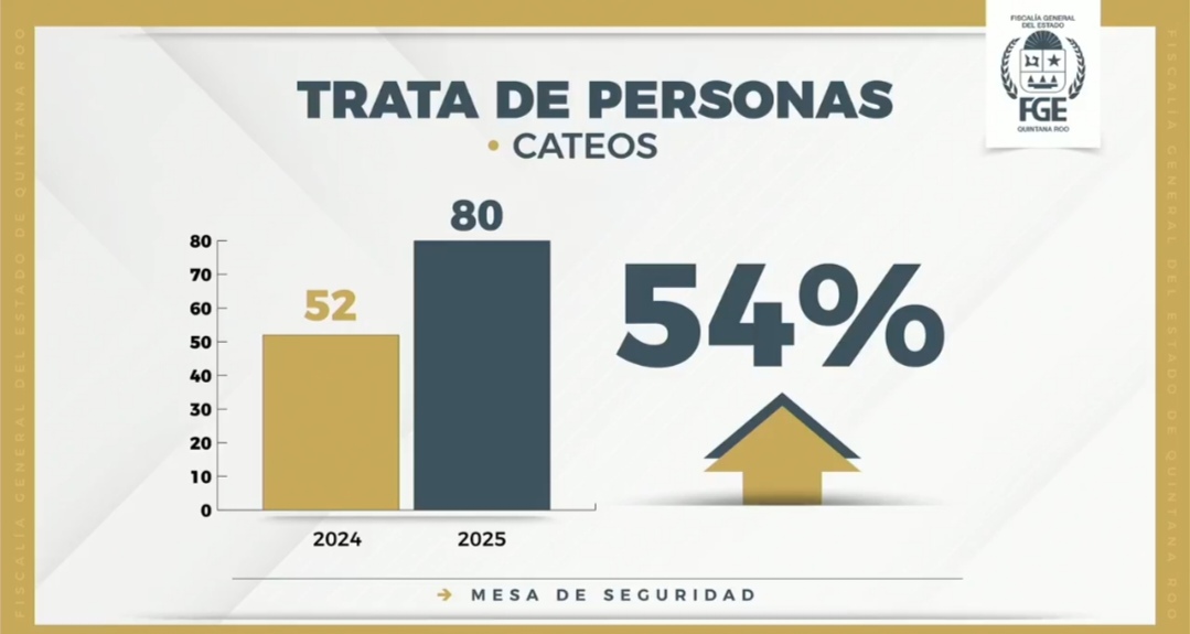 El funcionario confirmó que, según datos del Secretariado Ejecutivo del Sistema Nacional de Seguridad Pública, Quintana Roo registró 140 carpetas de investigación por trata de personas entre enero y octubre de 2025, lo que representa el 26 por ciento del total nacional.