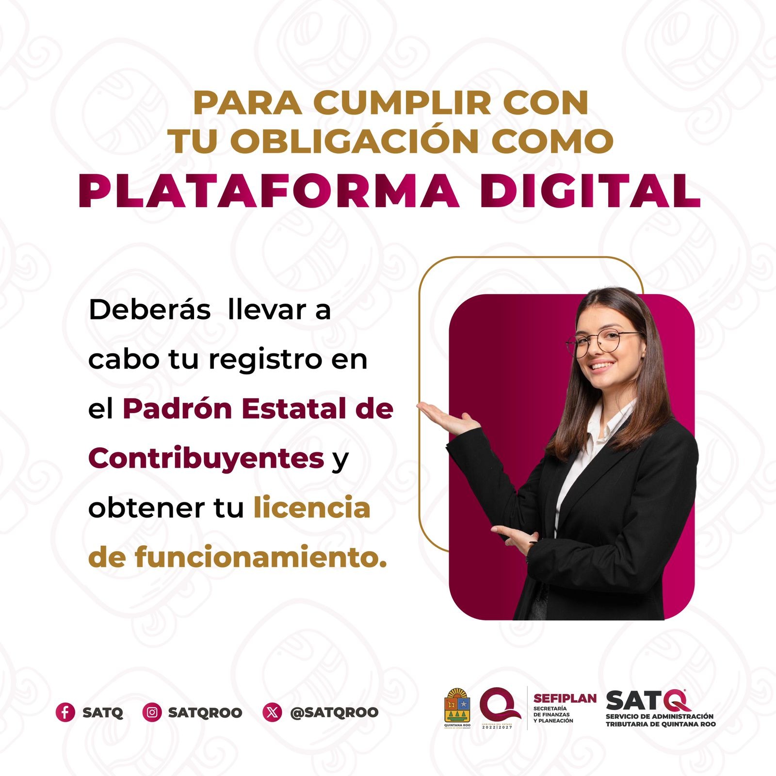 En este contexto, se exhorta a las plataformas digitales a regularizar su situación fiscal y cumplir con las disposiciones contenidas en las Reglas de Carácter General para la obtención del Registro Estatal de Contribuyentes de las plataformas digitales y del envío del padrón de anfitriones, publicadas en el Periódico Oficial del Estado el 12 de abril de 2023, así como lo dispuesto en la Ley del Impuesto al Hospedaje de Quintana Roo.
