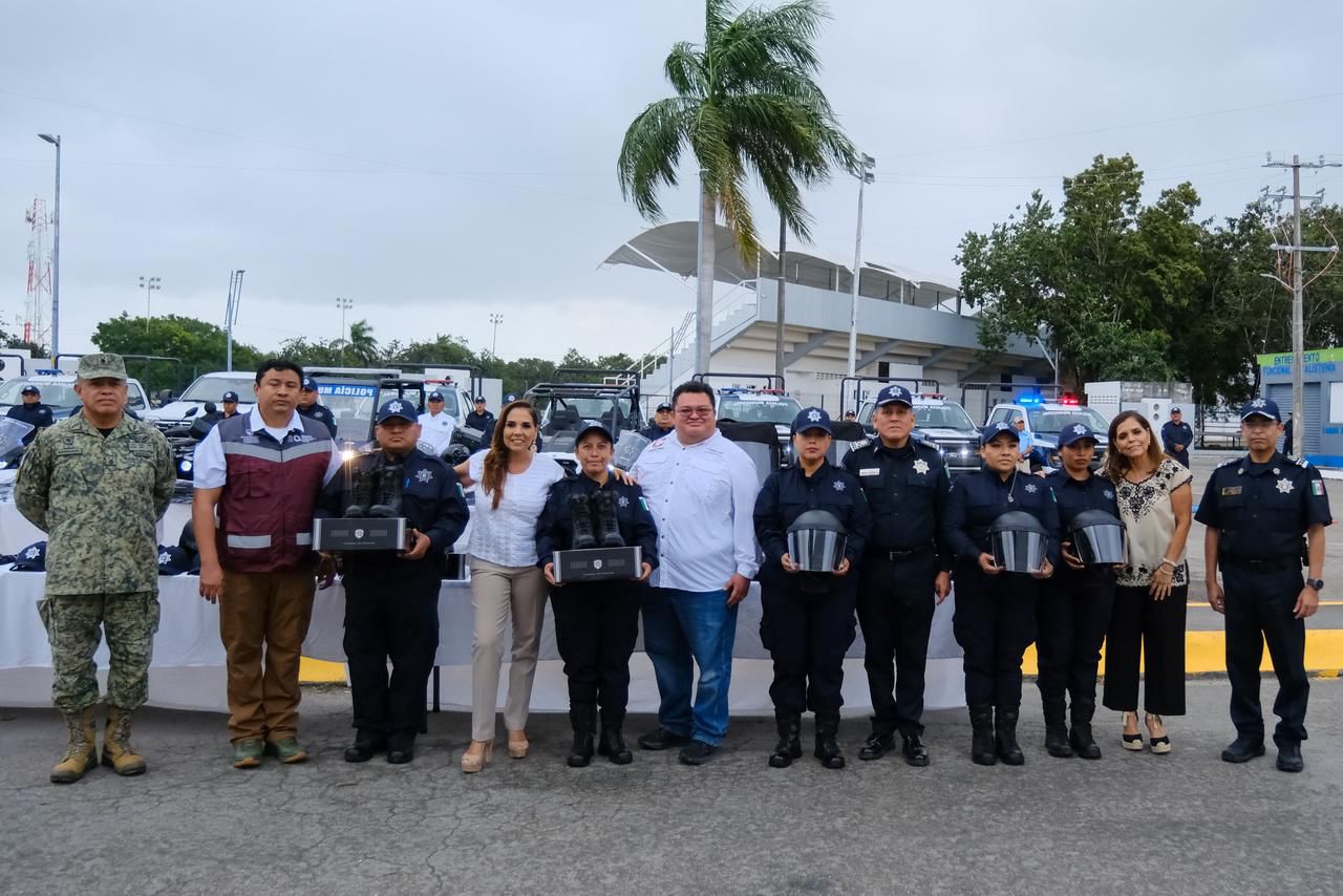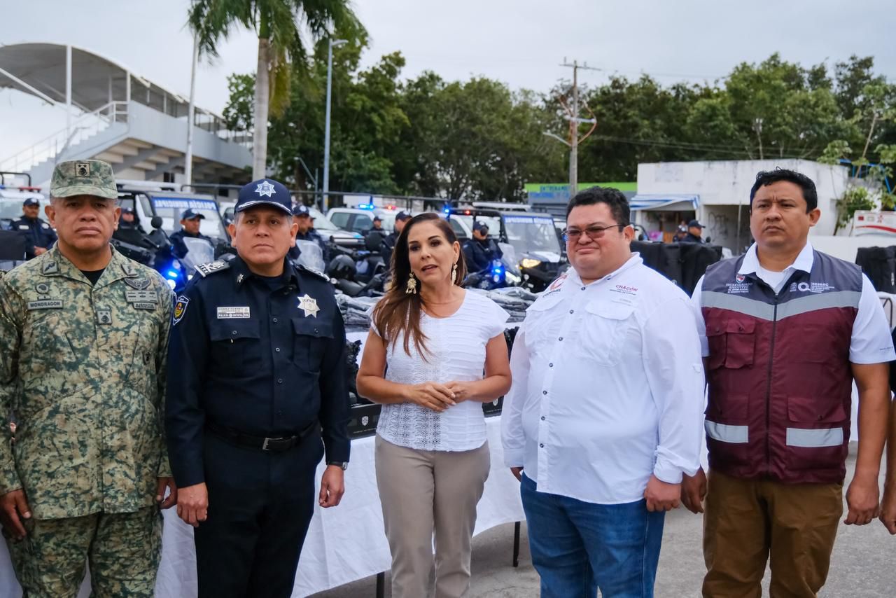 Durante el evento y acompañada del presidente municipal José Luis Chacón Méndez, Mara Lezama destacó que, a través del Fideicomiso para el Bienestar del Turismo Crucerista, se realizó una inversión superior a los 24.5 millones de pesos para la renovación y fortalecimiento del parque vehicular, lo que permitirá mejorar la capacidad operativa y de respuesta de las corporaciones de seguridad.