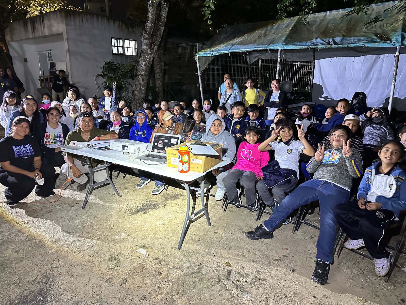 En este taller de monitoreo participaron estudiantes de segundo grado de la escuela primaria Benito Juárez. Durante la actividad, aprendieron sobre la biología y ecología de los murciélagos, así como sobre los servicios ambientales que brindan, como el control de insectos perjudiciales para la agricultura.