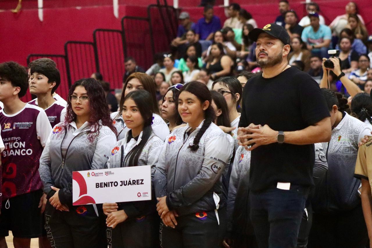 En lo que fue toda una fiesta deportiva en el Poliforum Cancún, el titular de la CODEQ destacó que hoy Quintana Roo es el primer gobierno en implementar un modelo de competencia integral donde todos los municipios compiten bajo las mismas reglas, con las mismas oportunidades y con una ruta clara hacia el alto rendimiento.