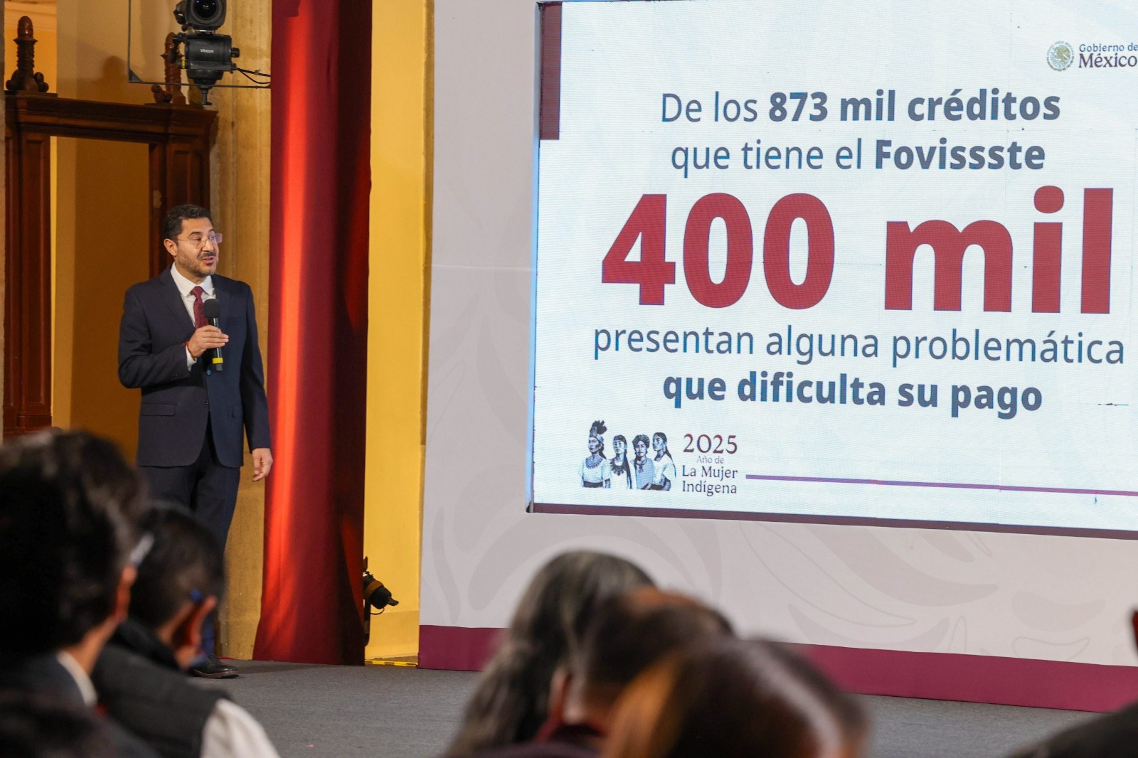 “Actualmente el FOVISSSTE tiene 873 mil acreditados, de esos 400 mil presentan alguna problemática que dificulta su pago. Las y los titulares de esos 400 mil créditos problemáticos serán beneficiados con programas de apoyo del FOVISSSTE. De esos 400 mil beneficiados, 240 mil son maestros y maestras”, sostuvo en presencia de la Presidenta Claudia Sheinbaum.