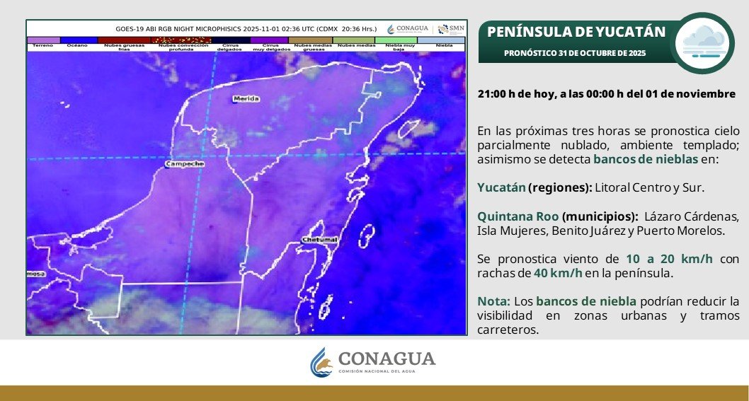 Al mismo tiempo, canales de baja presión sobre el occidente y centro del país, combinados con humedad del océano Pacífico, generarán chubascos en Colima, Michoacán, Guerrero, Oaxaca y Chiapas, así como lluvias dispersas en Nayarit, Jalisco, Estado de México, Ciudad de México, Morelos, Puebla e Hidalgo. En Yucatán y Quintana Roo se prevén lluvias aisladas por el ingreso de aire húmedo del mar Caribe.