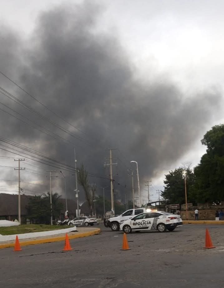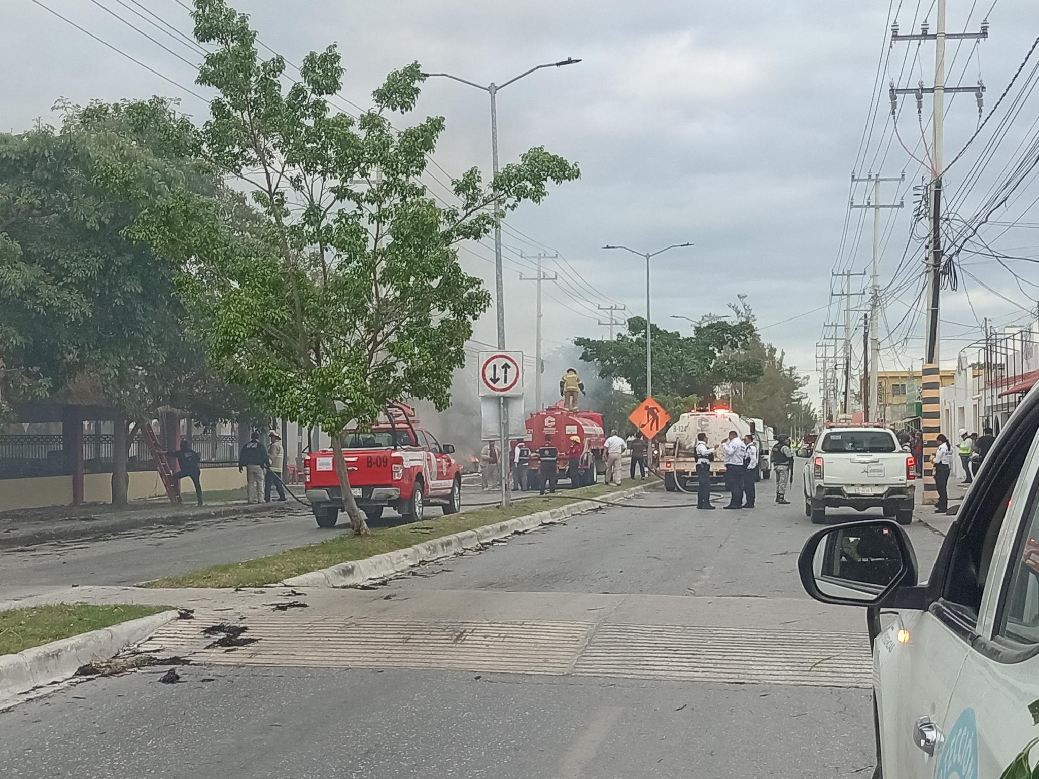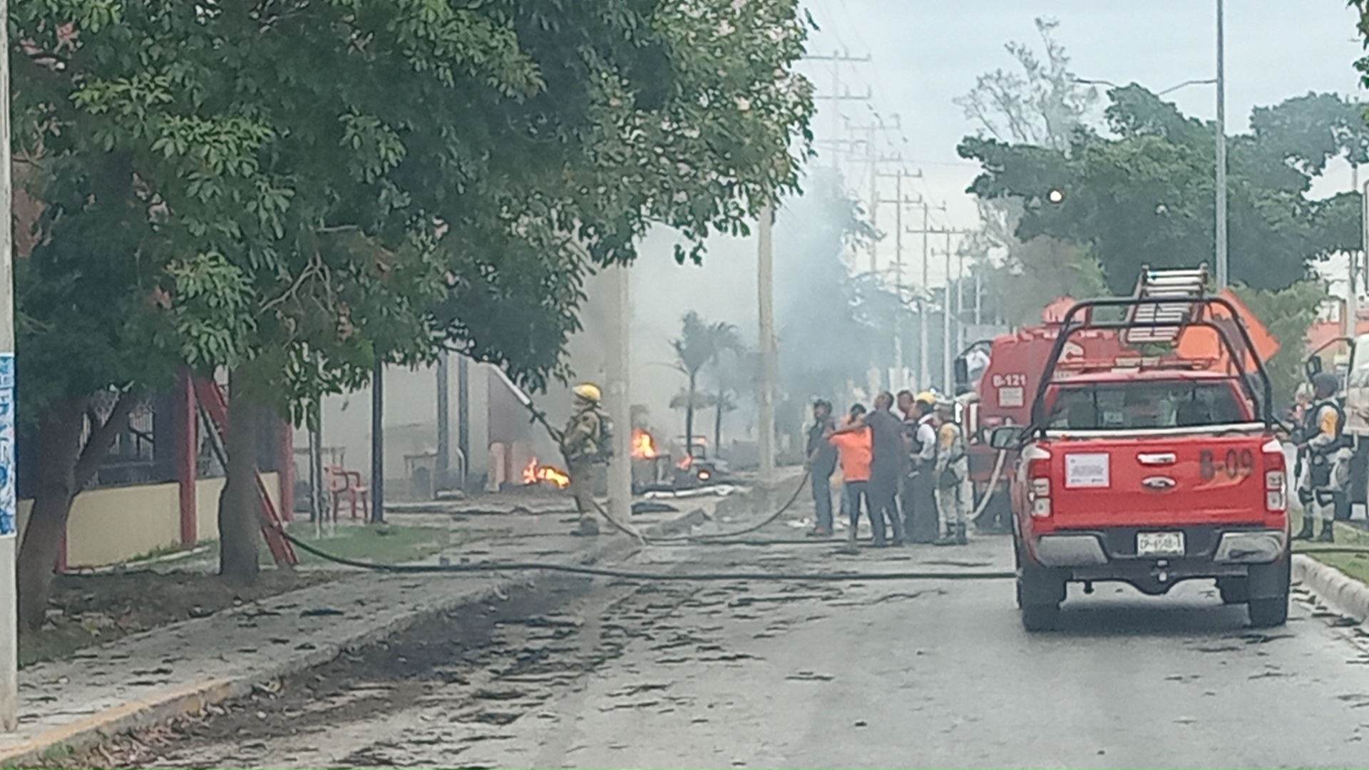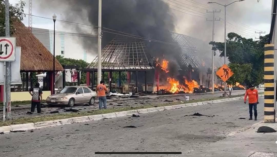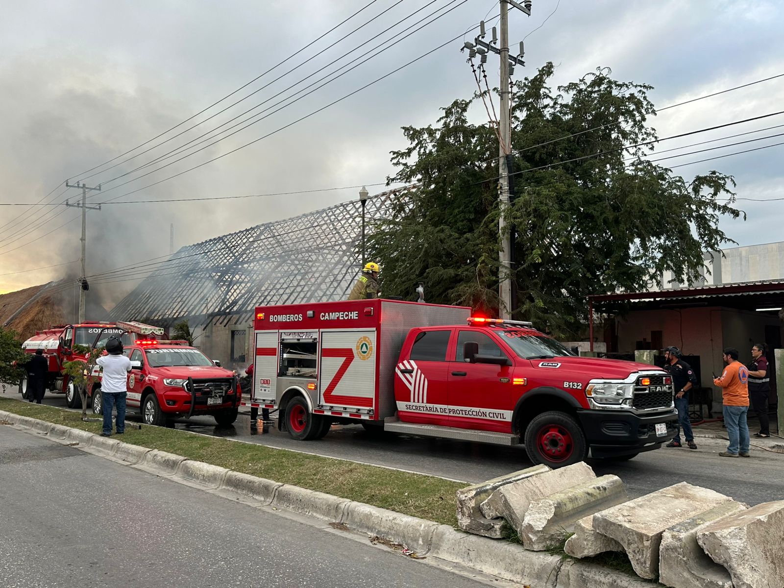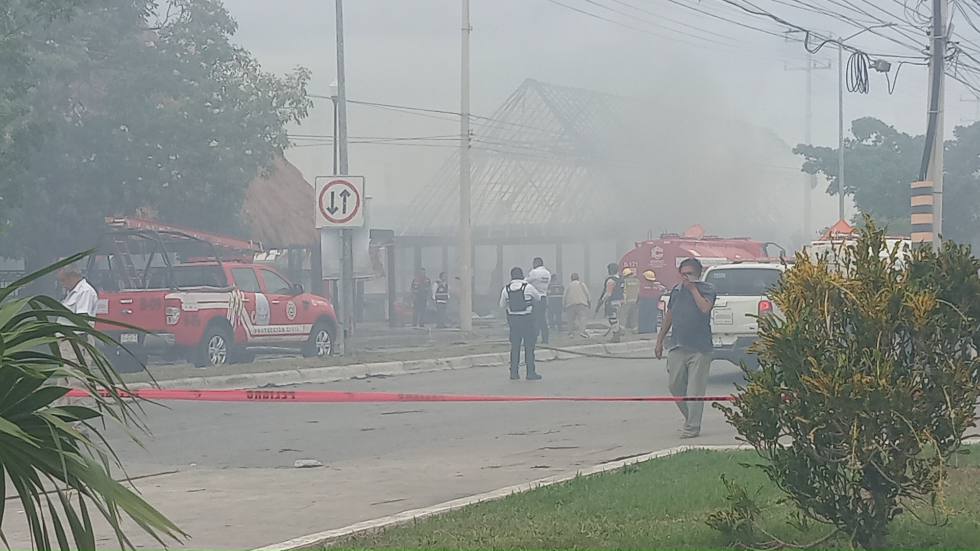 En cuestión de segundos el fuego devoró toda la palapa de más de 10 metros de largo. La avenida fue cerrada por la Policía Estatal (PE) en ambos carriles para la movilización de todo el parque vehicular de Bomberos de la SEPROCICAM.