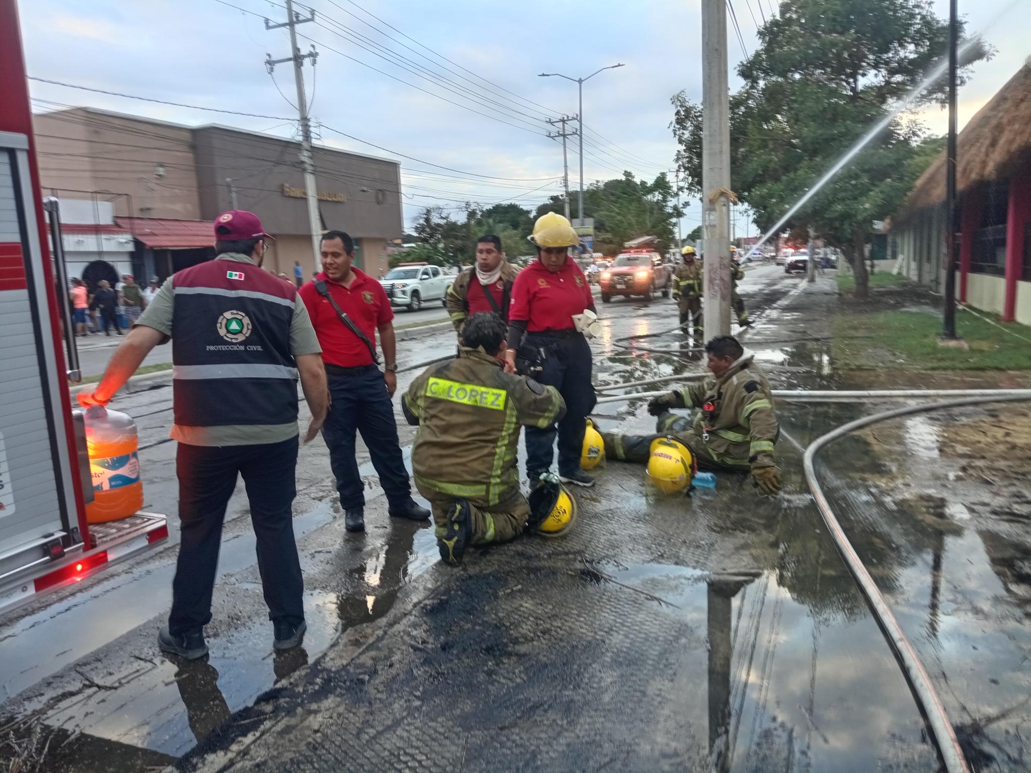 En Escárcega, un predio baldío fue consumido por el fuego, mientras que en el municipio del Carmen un tráiler cargado con Maseca y una barbería terminaron reducidos a chatarra por las llamas.