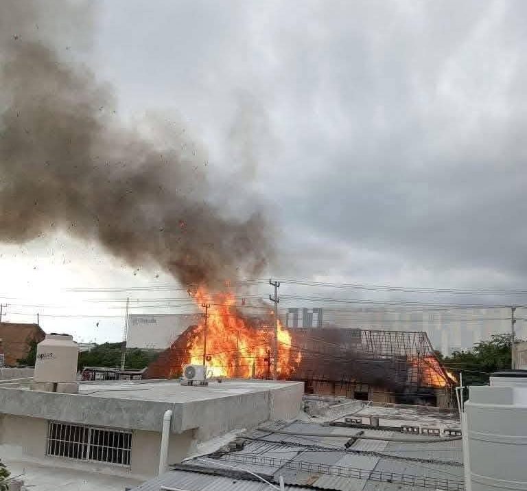 En cuestión de segundos el fuego devoró toda la palapa de más de 10 metros de largo. La avenida fue cerrada por la Policía Estatal (PE) en ambos carriles para la movilización de todo el parque vehicular de Bomberos de la SEPROCICAM.