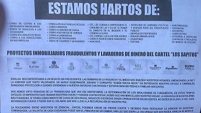 En los volantes no solo se vincula a Rubén Rocha con cárteles mexicanos, también se acusa a otras dos funcionarios, quienes estarían ligadas a una fracción del Cártel de Sinaloa que se dedica al cobro de piso.