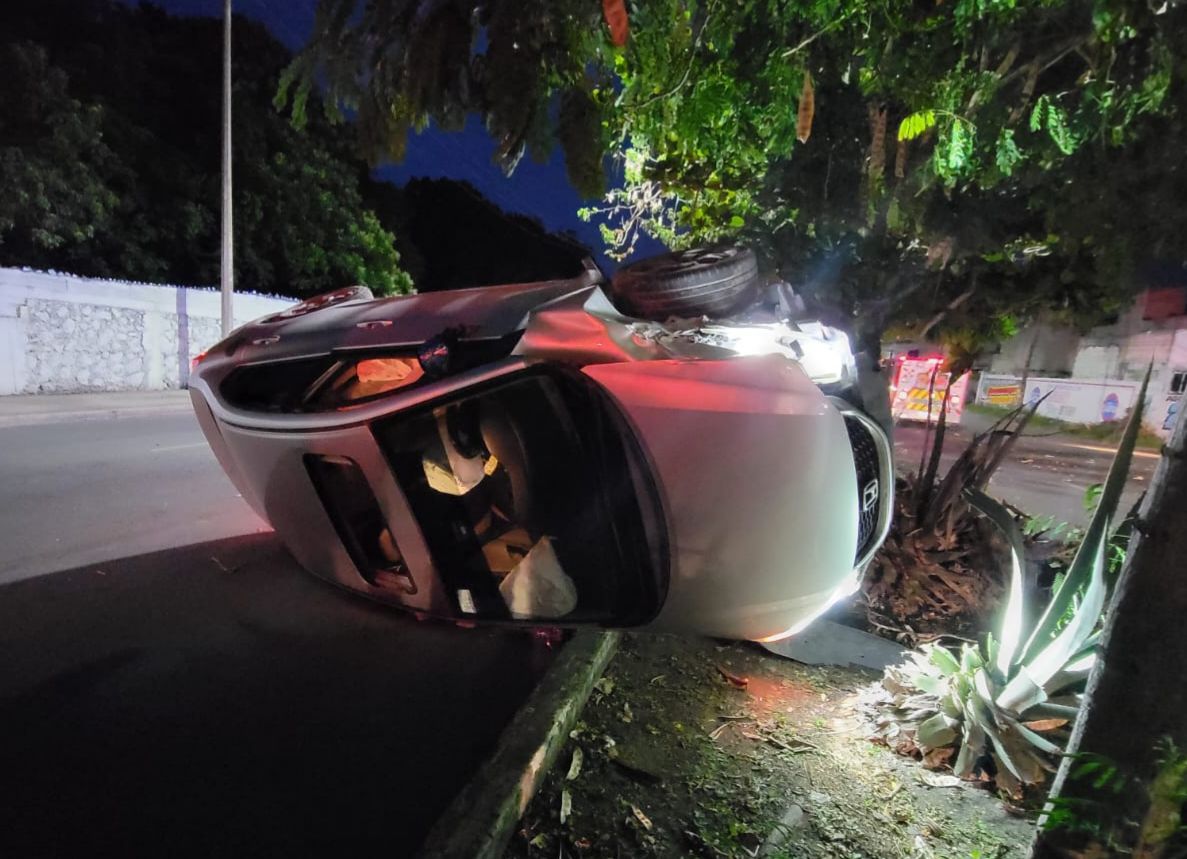 Fuerte Accidente en Cancún: Conductor Pierde el Control de su Vehículo y Vuelca en la Avenida Nichupté