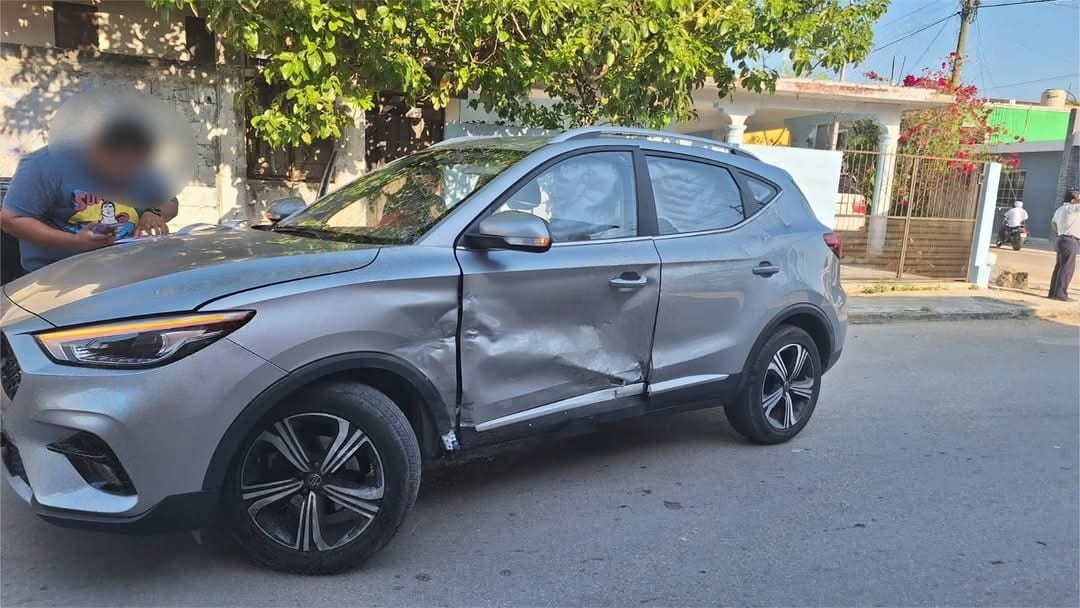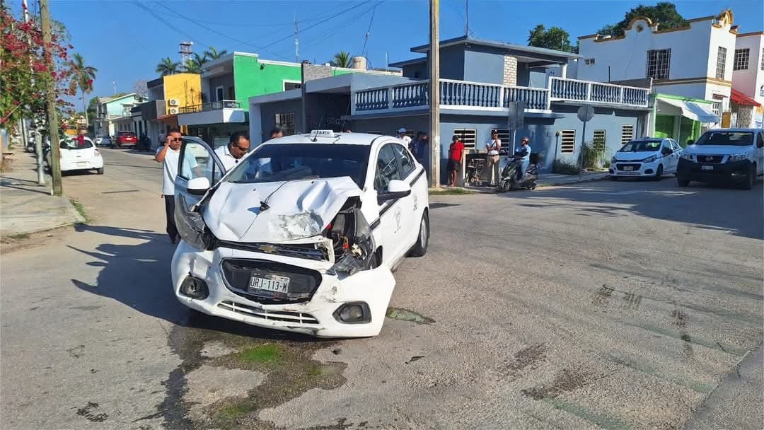 El percance se registró sobre la calle 67, entre la intersección con la calle 72 de la colonia Centro, donde un taxi local y un vehículo particular colisionaron tras una aparente falta de respeto a la señal de alto.