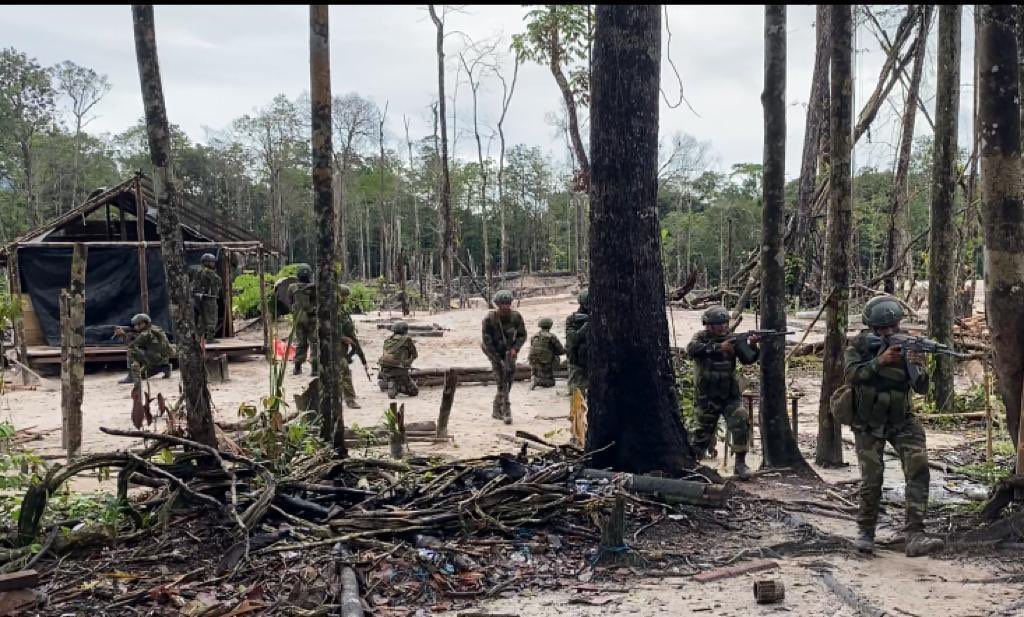 Señaló que en el lugar las fuerzas militares destruyeron implementos usados por los mineros ilegales, como combustible, compresores de aire, motosierras y una planta eléctrica, entre otros artefactos.