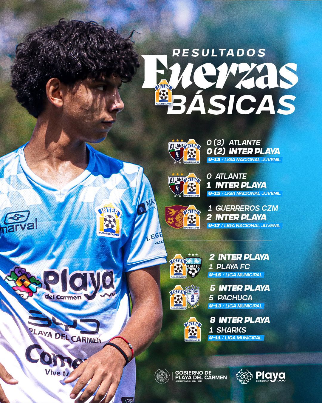 Y es que el Inter Playa tiene participación con sus Fuerzas Básicas, que coordina Nahum Ramos, tanto en la Liga Nacional Juvenil Quintana Roo (LNJQROO) como en la Liga Municipal de Playa del Carmen (LMPC) en distintas categorías, y el pasado fin de semana la cosecha fue muy productiva, ya que de seis juegos, ganaron cuatro y empataron dos, de un total de seis.