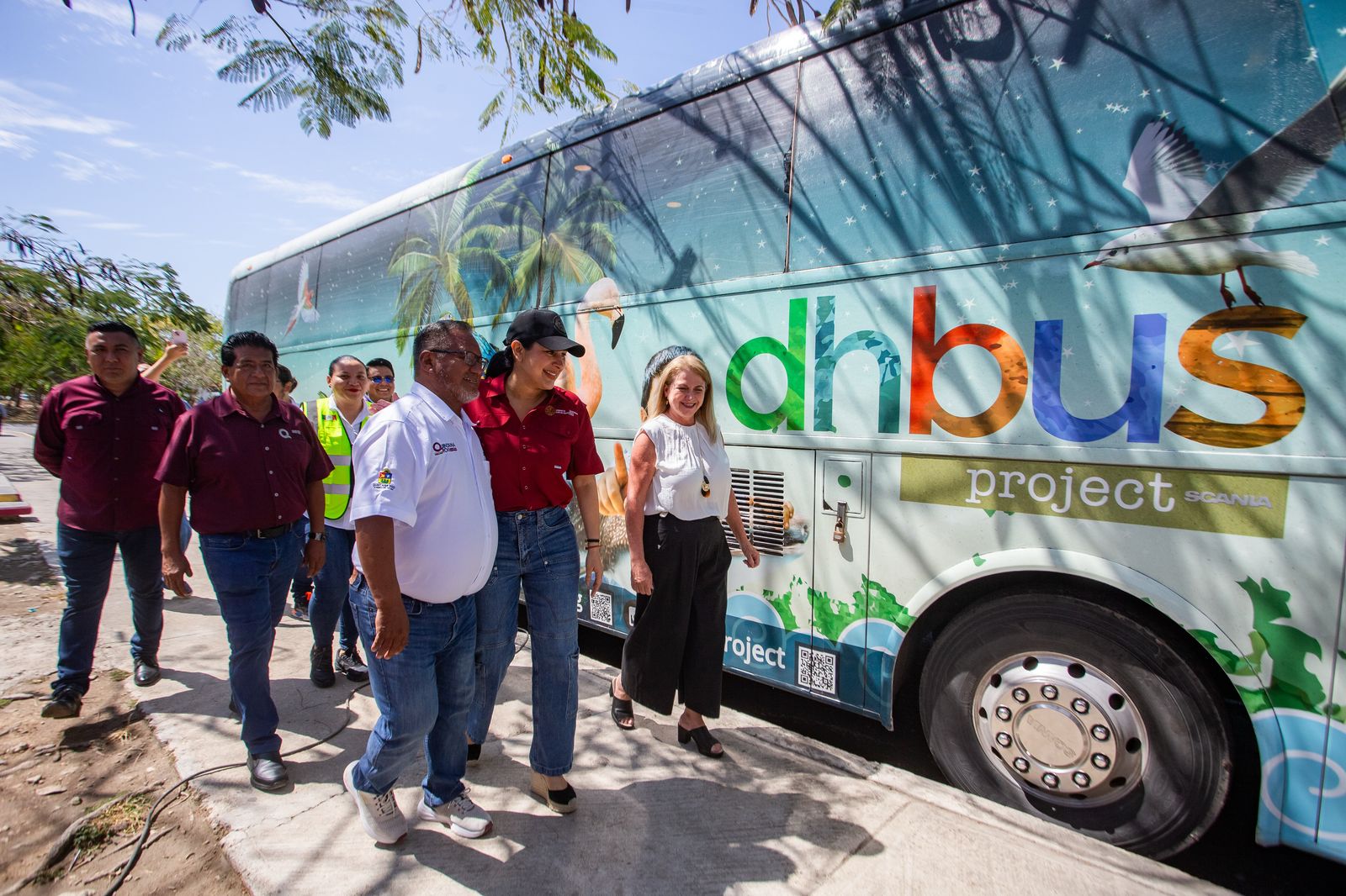 “Hoy no solo llega un autobús a nuestras calles, hoy llega una herramienta de transformación. Este espacio representa una oportunidad para que nuestras niñas y niños aprendan, se diviertan y se formen como ciudadanos responsables”, expresó Estefanía Mercado al visitar el DH Bus, adaptado como aula móvil y centro interactivo de aprendizaje.