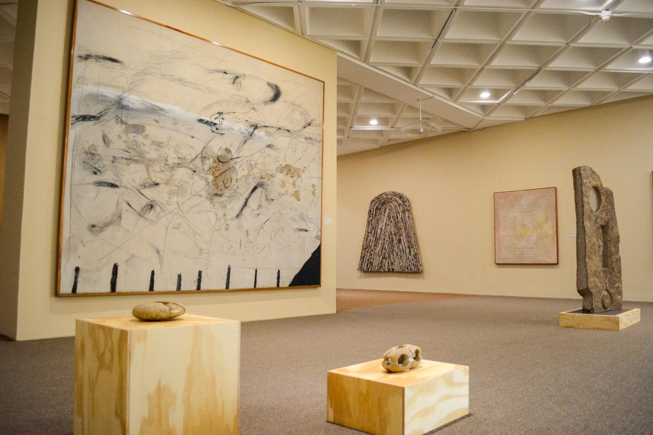 Un monolito se erige en la primera sala, en medio del color arena, piezas de piedra y tonos crudos y cremosos. De acuerdo con la directora del Museo Tamayo, tanto en el arte como en muchas disciplinas el desierto ha sido entendido como un lugar que aparenta ser inhóspito, pero en realidad no es así, sino que es un espacio donde lo místico, la contemplación y un estado de ánimo y psíquico se regeneran.