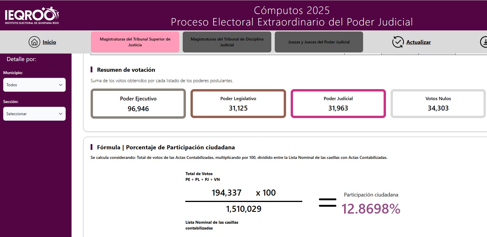 Ganan el Ejecutivo y Votos Nulos a los Poderes Judicial y Legislativo en la Elección del Tribunal Superior de Justicia de Quintana Roo