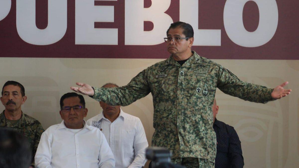 Las declaraciones del comandante de la 30 Zona Militar vienen presididas de una serie de narcomantas en las que se menciona su nombre, así como el de otros mandos de las instituciones de seguridad, por presuntamente vender la plaza al CJNG.