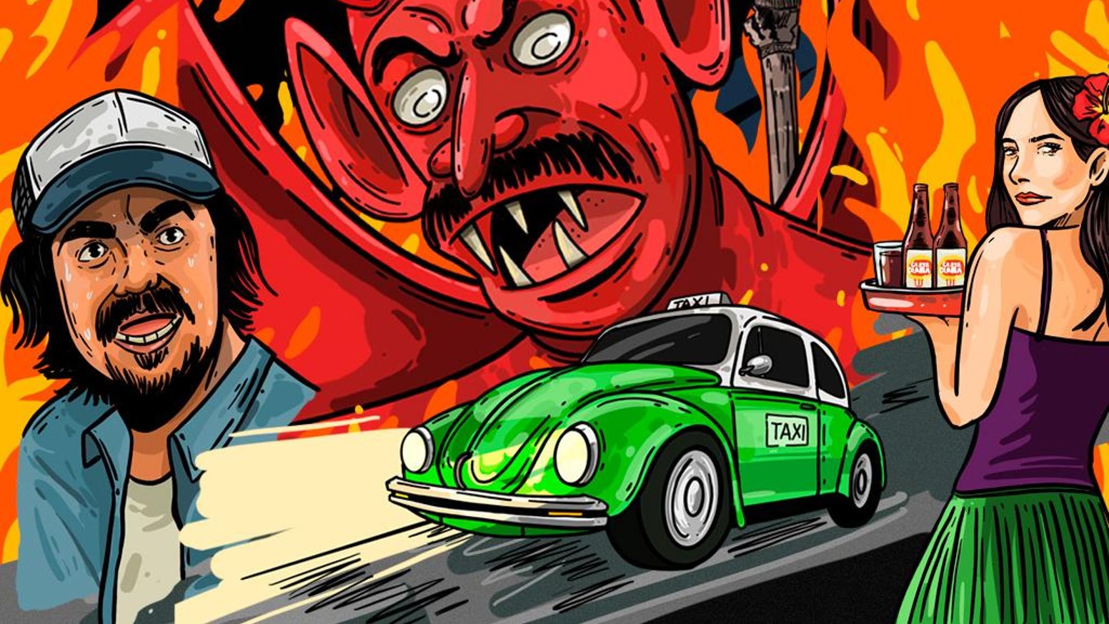 “El lugar del averno suena como el título de una cumbia satánica, por eso elegimos vocho; narra la historia del diablo manejando un auto en su cacería por almas en la Ciudad de México”, cuenta el actor.