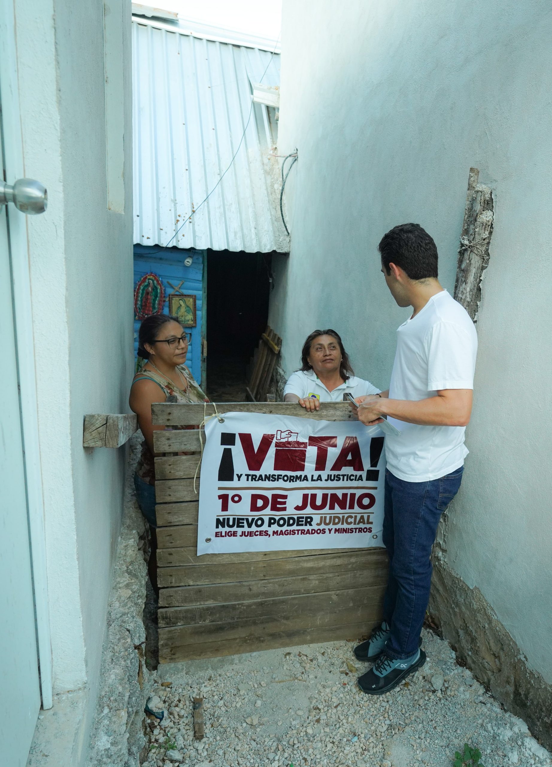 Durante una caminata casa por casa en la comunidad de Kantunilkín, el senador Gino Segura explicó a los vecinos la relevancia de este momento, destacando que será la primera vez que el pueblo decida de manera consciente y transparente quiénes representarán el interés del pueblo en el Poder Judicial.