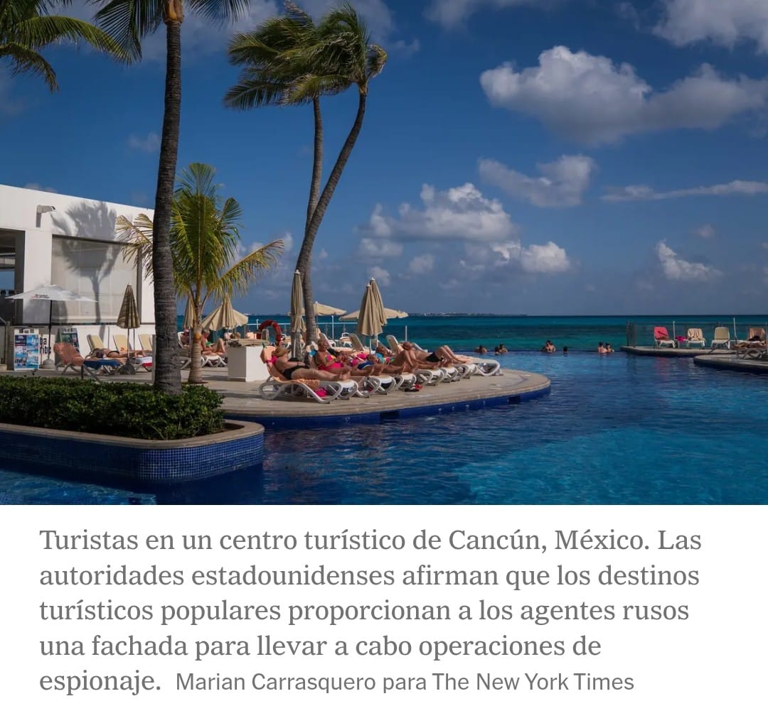 La proximidad de México a Estados Unidos y la cobertura que proporciona el turismo para que operen los espías ha permitido a Moscú intensificar significativamente sus actividades de espionaje en el país en los últimos años, dicen las autoridades estadounidenses. Moscú puede volar con espías e informantes desde Estados Unidos a destinos de playa como Cancún, que millones de estadounidenses visitan cada año, lo que proporciona una fachada convincente que levanta pocas sospechas.